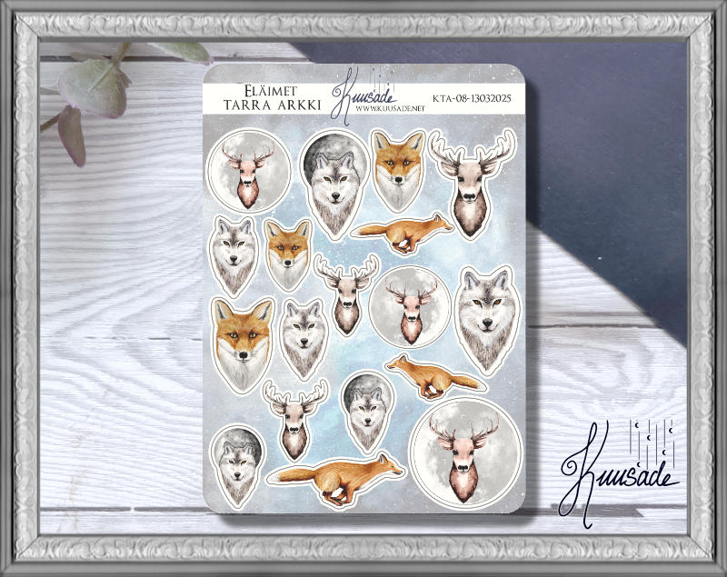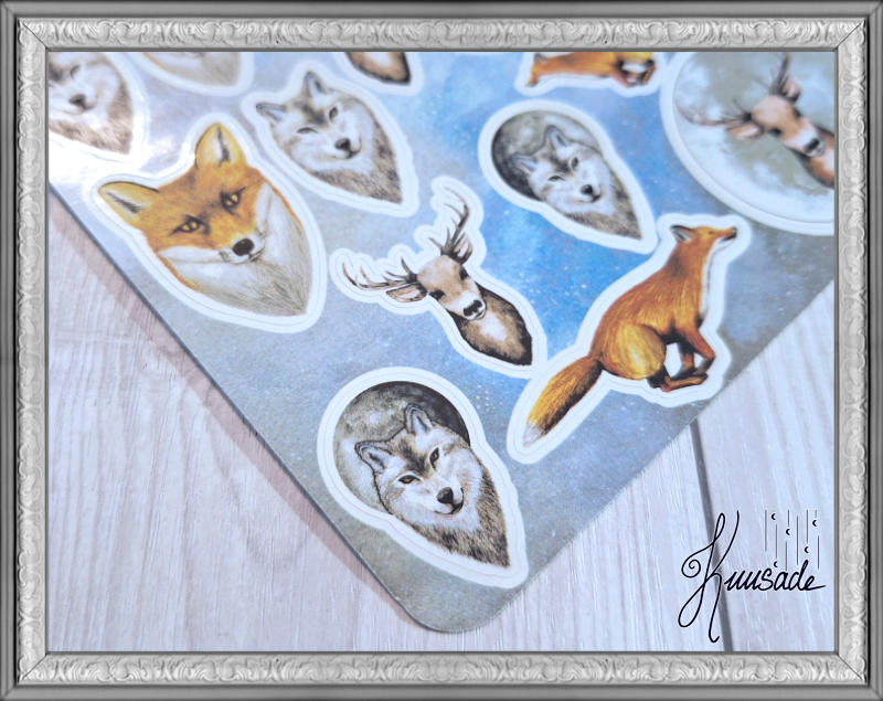The sticker sheets of Kuusade are made from the art and photos of Jenna Tuomala. They are created, scanned, print and cut in my own Studio at Tampere.