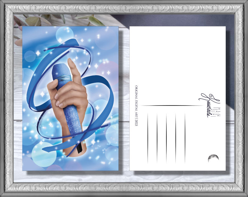 The postcards of Kuusade are made from the art of Jenna Tuomala and printed at professional printer to 350gsm matt paper with matt lamination on front. Behind the postcard is space for a message, address and stamp with the logo of Kuusade and the year and the technique the art was made in english