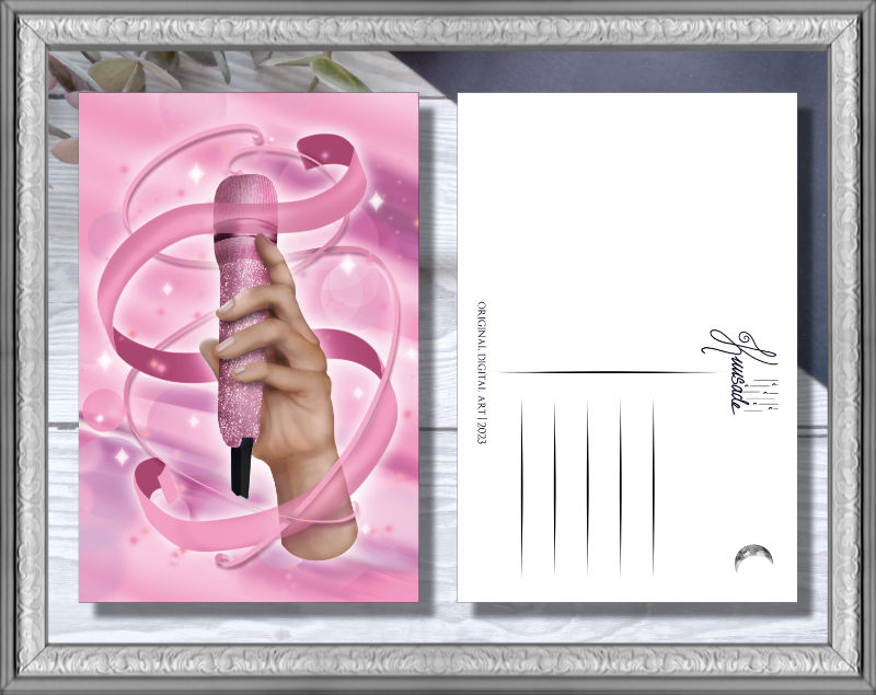 The postcards of Kuusade are made from the art of Jenna Tuomala and printed at professional printer to 350gsm matt paper with matt lamination on front. Behind the postcard is space for a message, address and stamp with the logo of Kuusade and the year and the technique the art was made in english