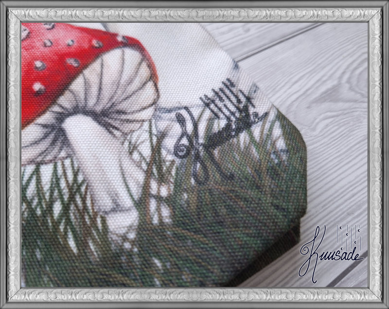 The Canvas totebags of Kuusade are printed from the own art of Jenna Tuomala. The material on the totebags is thicker and more durable Canvas-style polyester fabric. The bags have a snap for fastening and a small, separate zipper pocket inside
