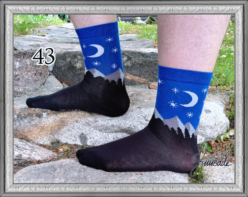 The socks of Kuusade are lovely, soft cotton socks that are made of the designs of Jenna Tuomala. Their size is "one size" which fits a EU foot size of about 38-43.