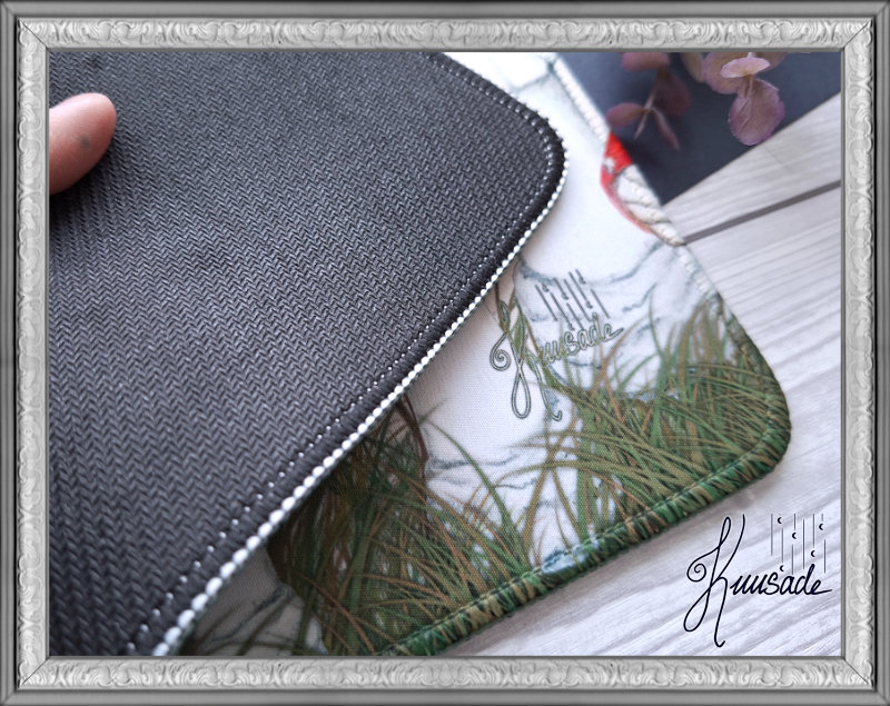 Kuusateen hiirimatot ovat taiteesta painettuja pehmeitä 3mm paksuja mattoja. Ne ovat materiaalilta polyesteri kangasta ja niiden pohjassa on liukuesteenä musta kumi. Mattojen reunat ovat tikattu kauttaaltaan kestävyyden vuoksi.