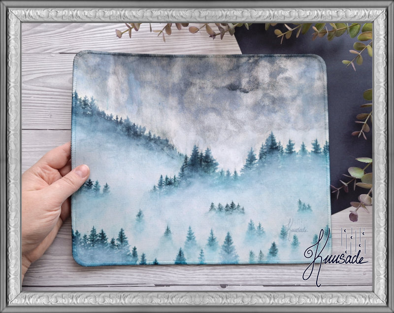 Kuusateen hiirimatot ovat taiteesta painettuja pehmeitä 3mm paksuja mattoja. Ne ovat materiaalilta polyesteri kangasta ja niiden pohjassa on liukuesteenä musta kumi. Mattojen reunat ovat tikattu kauttaaltaan kestävyyden vuoksi.