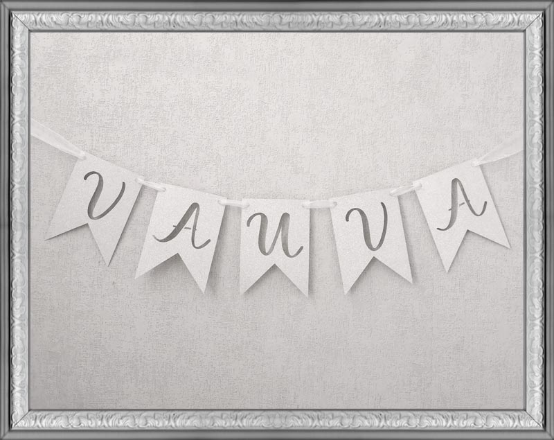 Kuusateen kartonkiviirit ovat näyttävä lisä kotiisi tai juhliisi. Viiri on paksua, 200g kartonkia ja sen mukana tulee valkoinen organza nauha. Nauhan pituus on 200cm + viirin leveys.