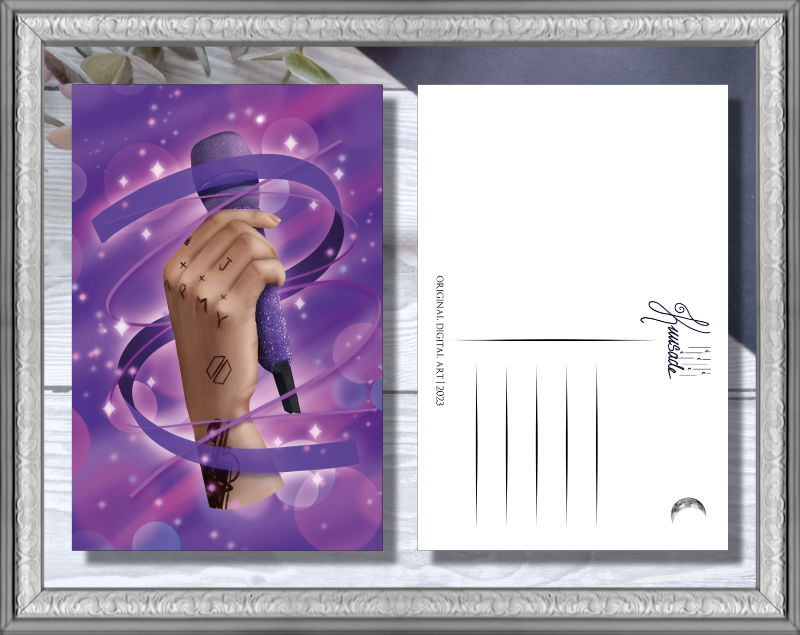 Kuusateen printit on tehty omista akvarelli-, guassi, sekä digitaalitaiteesta, jotka on teetetty printeiksi painotalossa. Ne on painettu 350gsm kartongille. Ne ovat hieman paksumpia kuin "normaalit" postikortit ja kestävät näin paremmin taideteoksena tai postikorttina