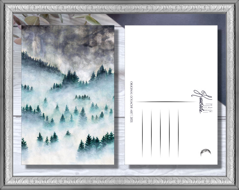 Kuusateen printit on tehty omista akvarelli-, guassi, sekä digitaalitaiteesta, jotka on teetetty printeiksi painotalossa. Ne on painettu 350gsm kartongille. Ne ovat hieman paksumpia kuin "normaalit" postikortit ja kestävät näin paremmin taideteoksena tai postikorttina