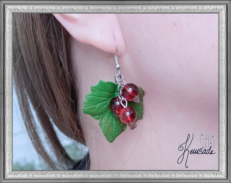 Kuusateen kolmiulotteiset korvakorut on muotoiltu kestävästä polymeerimassasta.