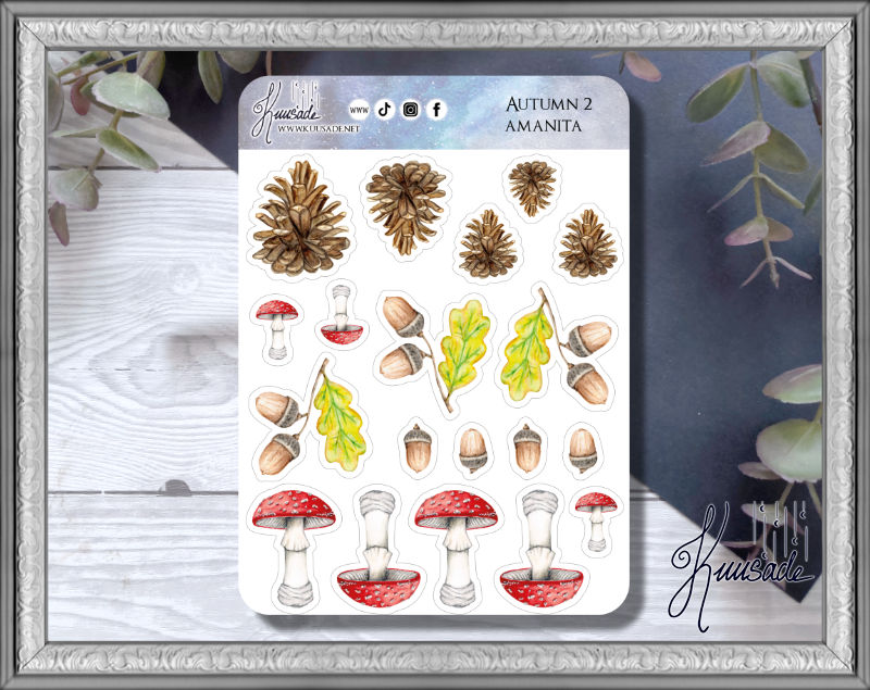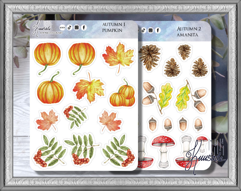 Kuusateen tarrat on tehty Kuusateen Jennan omista taideteoksista sekä valokuvista. Ne skannataan, asetellaan, viimeistellään ja leikataan omalla työhuoneella Tampereella.